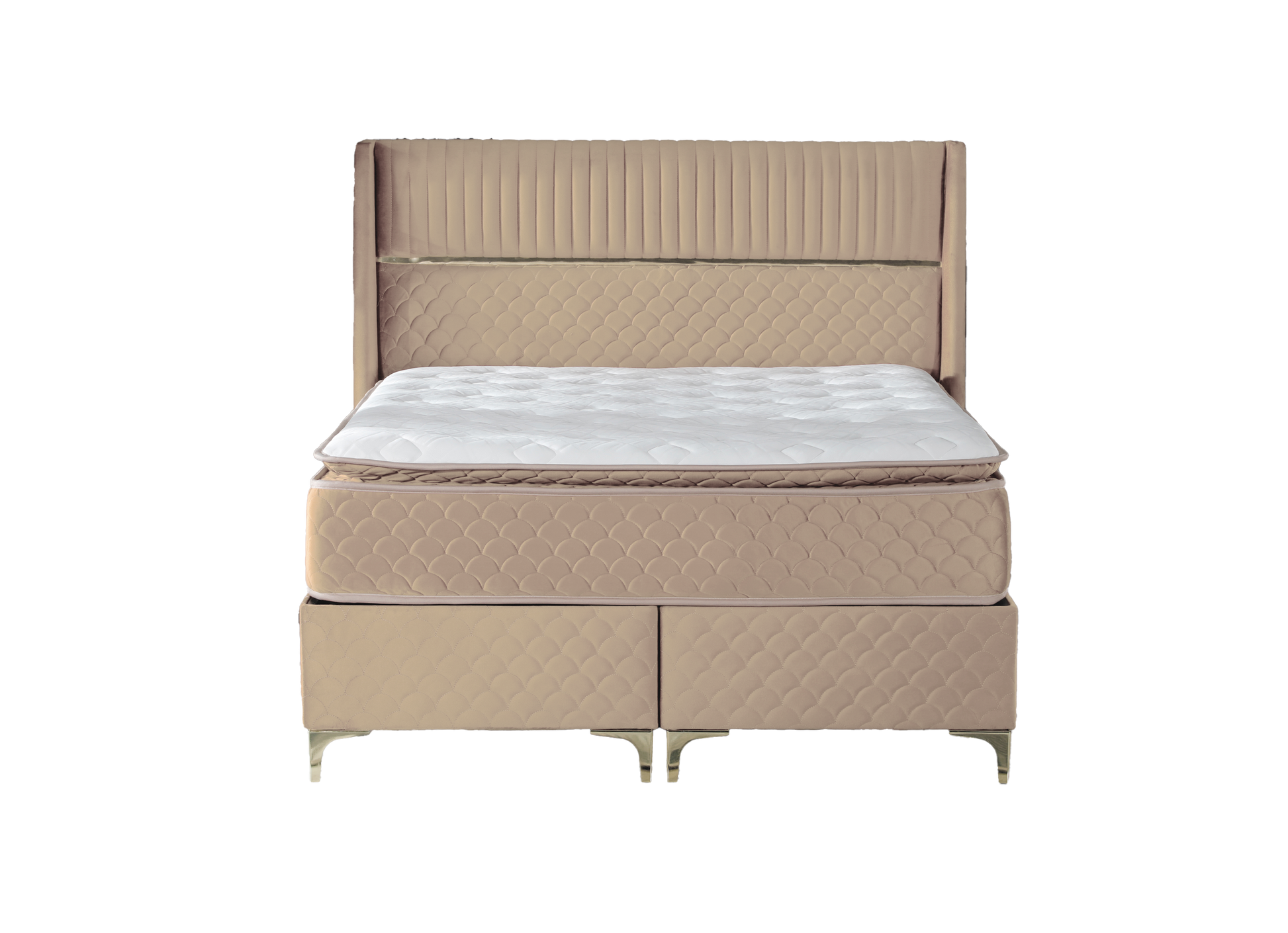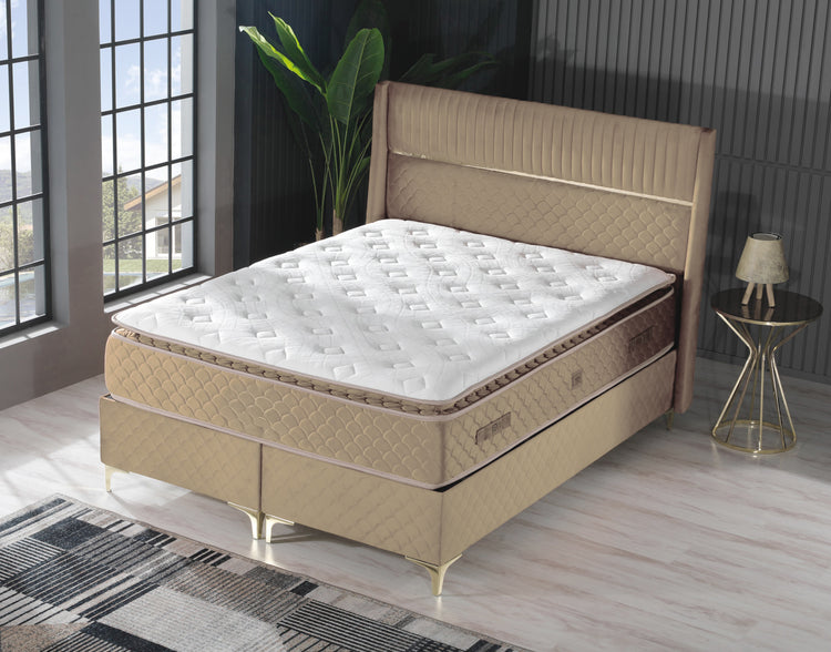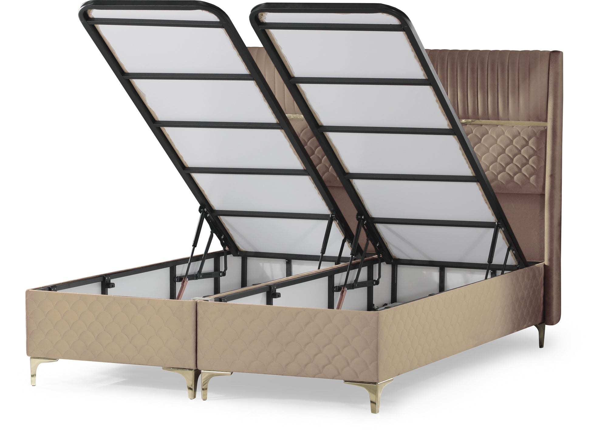 Patul Mamu 160x200 cm, disponibil la La Cucu, este conceput pentru confort si functionalitate maxima. Cu un design modern si tapiterie de culoare cappuccino, acest pat se potriveste perfect in orice dormitor contemporan. Include o somiera metalica rabatabila ce ofera un spatiu de depozitare ascuns, iar salteaua inclusa completeaza setul pentru un somn odihnitor.
