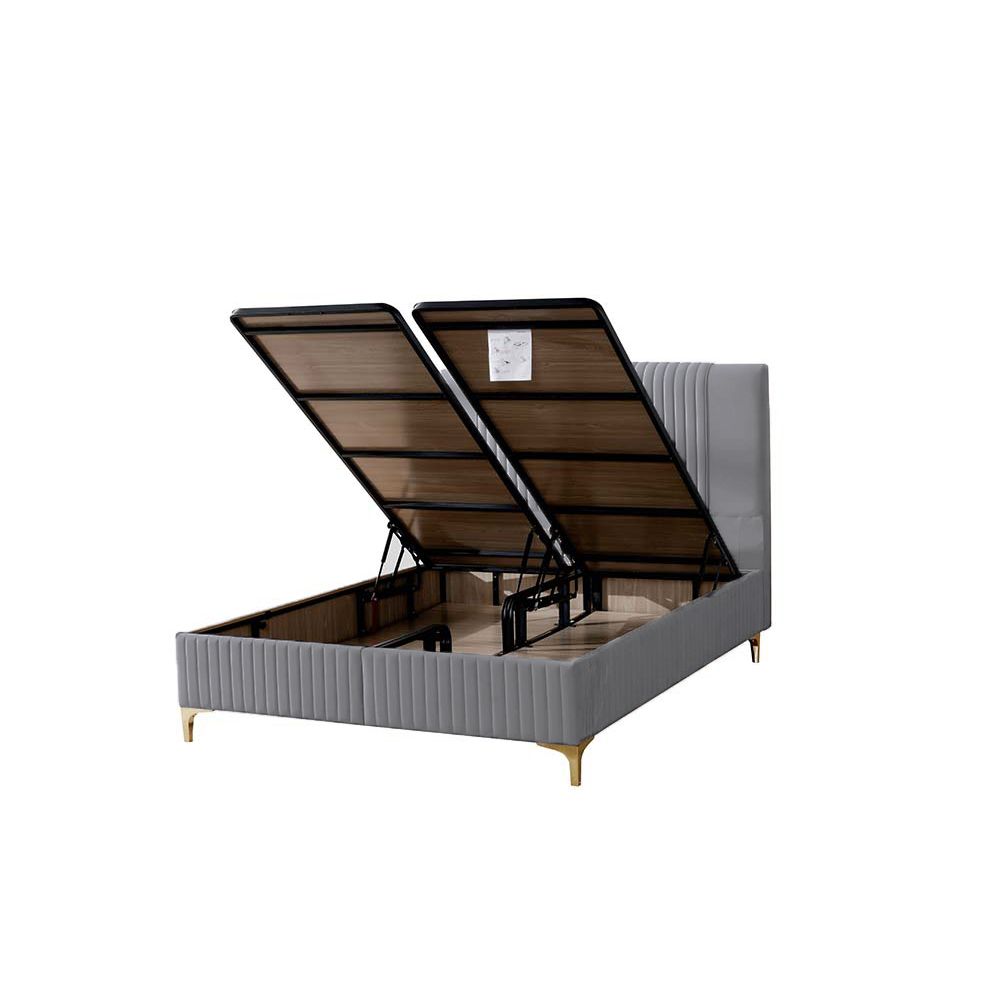 Pat Melia cu saltea , tapitat, culoare gri deschis