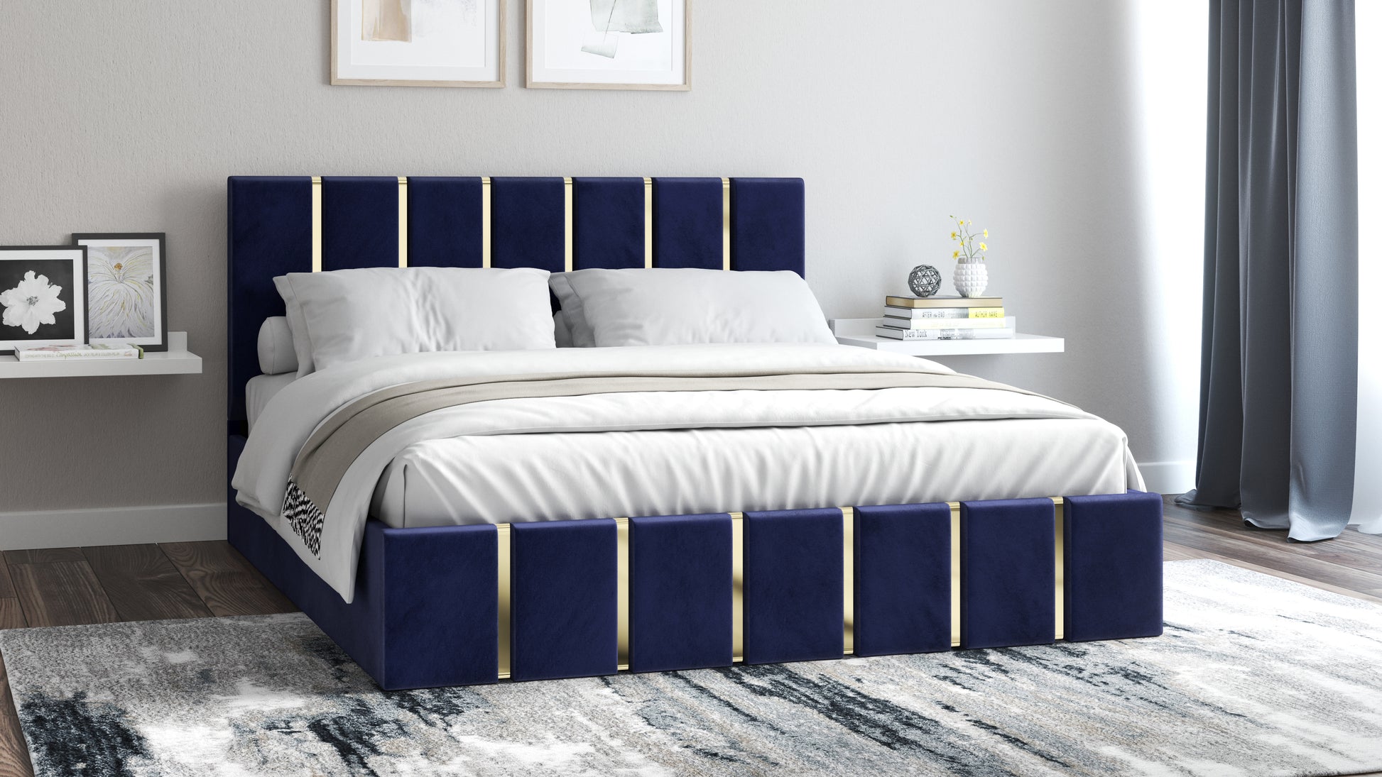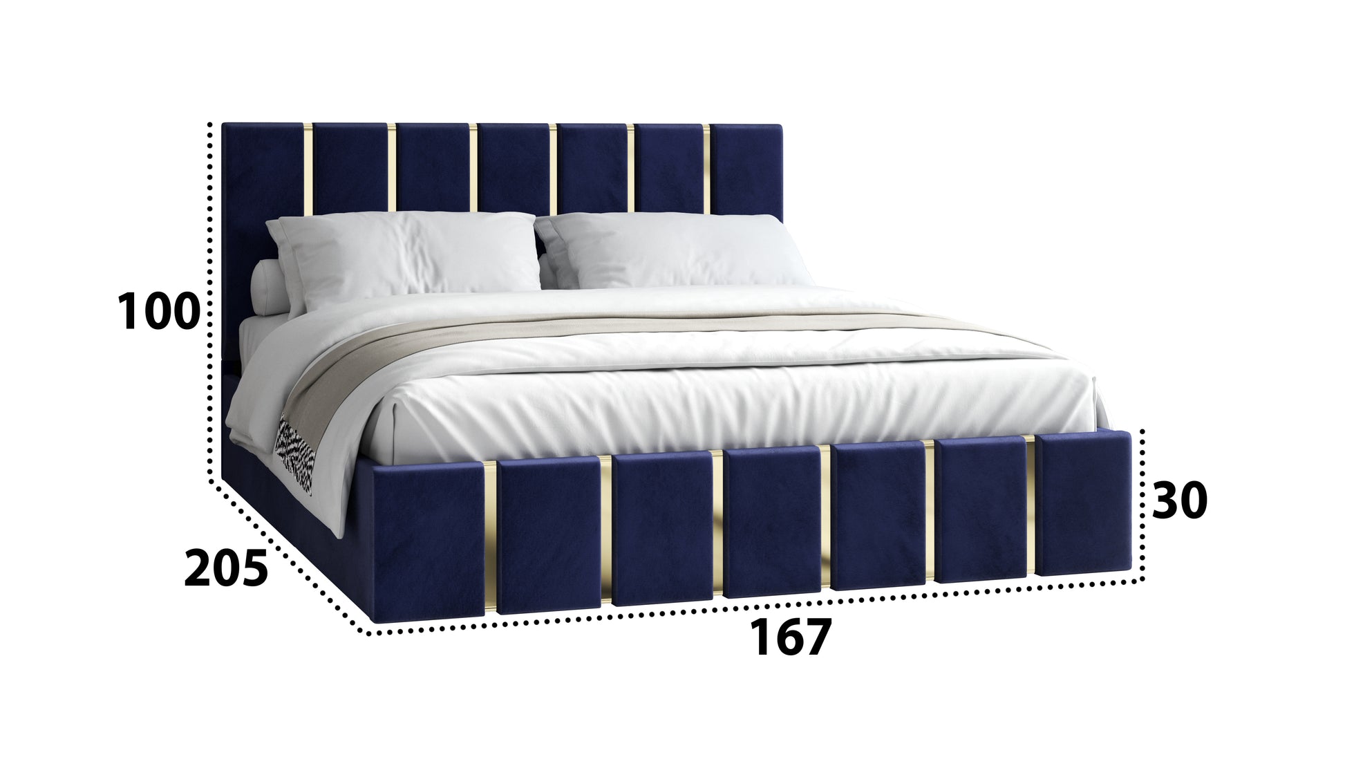Pat Venezia, 160x200 cm, fara picioare, albastru/argintiu, suport saltea