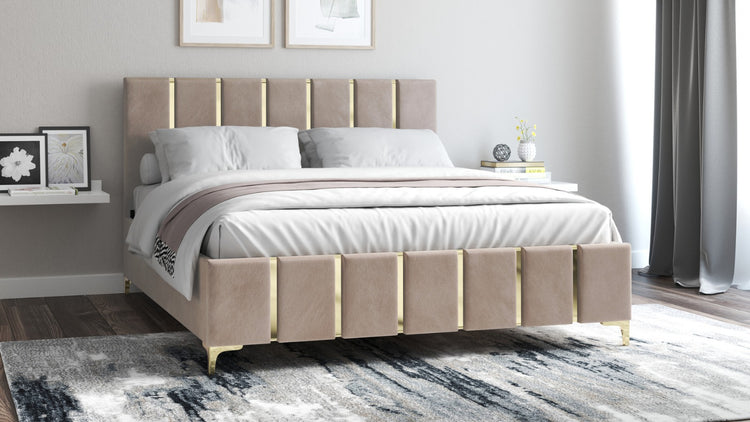 Pat Venezia, 160x200 cm, cappuccino/auriu, suport saltea din PAL