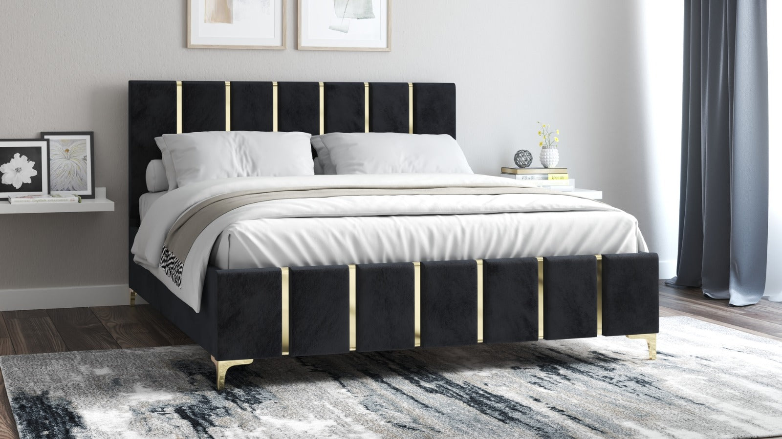 Pat Venezia, 160x200 cm, negru/auriu, suport saltea din PAL