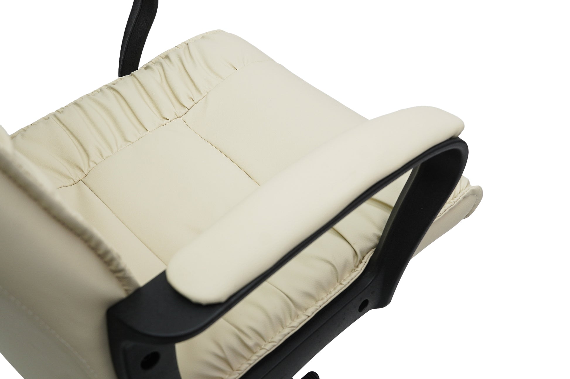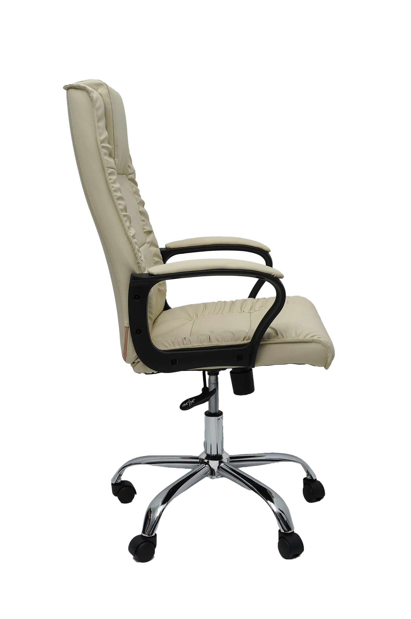 Scaunul de birou S-233, in nuanta crem, aduce un plus de eleganta si luminozitate spatiului de lucru. Tapiteria din piele ecologica ofera un aspect rafinat si este usor de intretinut, fiind potrivita pentru birouri moderne, home office sau zone de studiu. Reglajul pe inaltime permite adaptarea usoara pentru o pozitie corecta si confortabila. Produs disponibil in magazinul La Cucu.