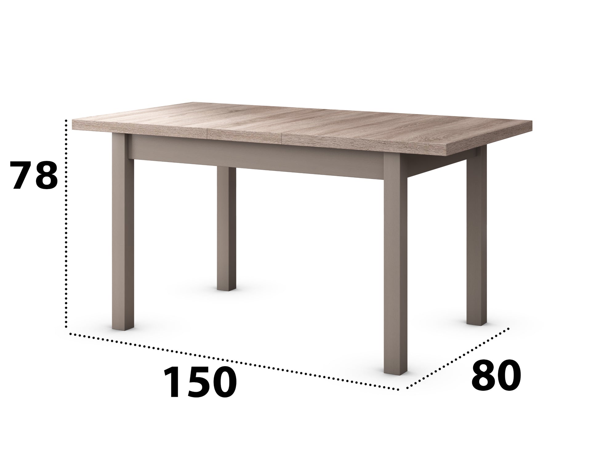 | Dimensiuni Masa | Inălțime: 78 cm Lungime extinsă: 150 cm Lungime închisă: 120 cm Lățime: 80 cm |