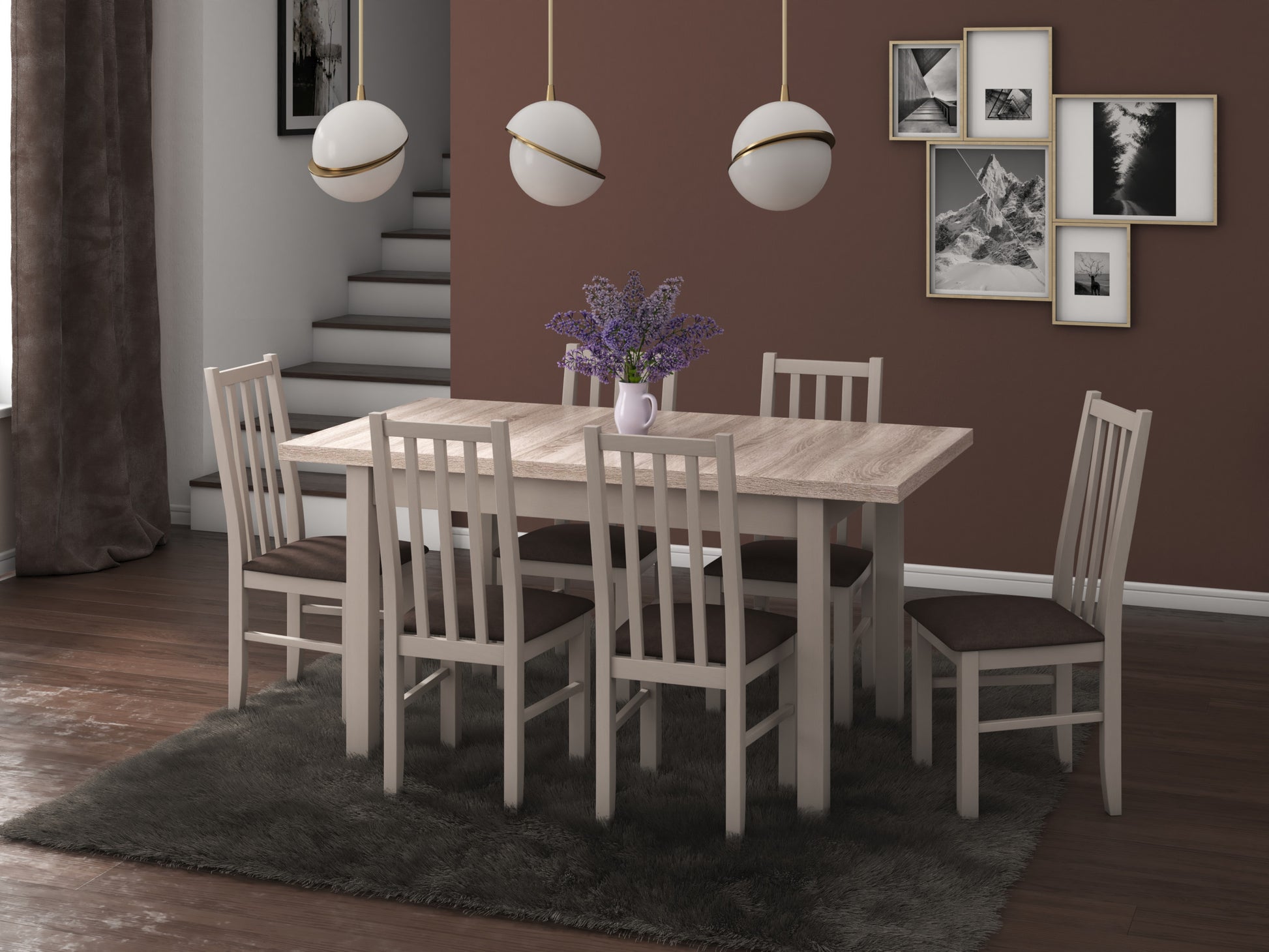 Set masa extensibila 120x150cm cu 6 scaune tapitate, MB-13 Max5 si S-38 Boss10 S6, sonoma, lemn masiv de fag, stofa