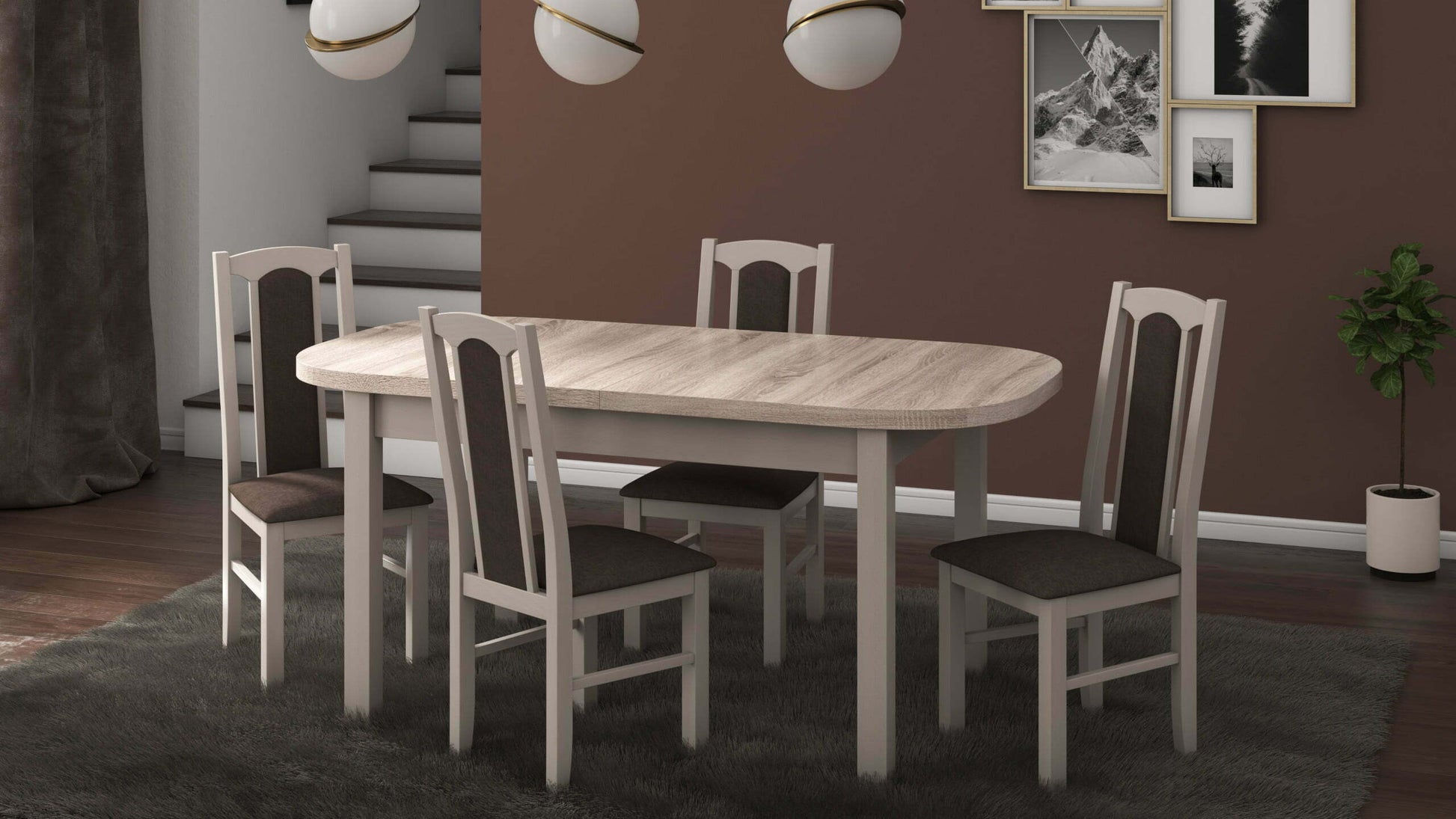 Set masa extensibila 160x200cm cu 4 scaune tapitate, mb-12 venus1 si s-37 boss7 s6, sonoma, lemn masiv de fag, stofa