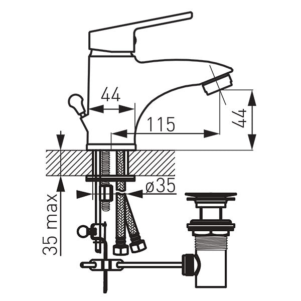 Montajul se face pe un singur orificiu, iar ventilul de scurgere 1 1/4” este inclus, completand instalarea rapida si fara complicatii. Aeratorul M24x1 contribuie la economisirea apei, iar racordurile flexibile asigura o conectare stabila si sigura.