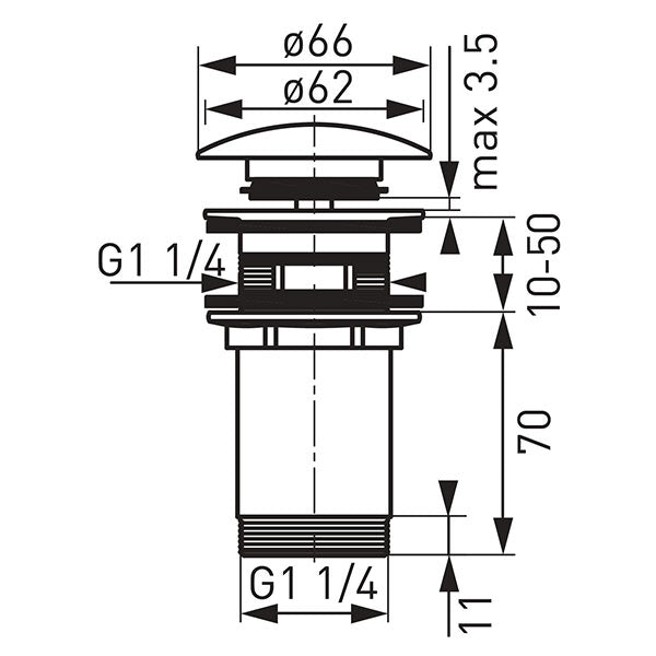 Ventil lavoar Click-Clack 1 1/4 Rotondo cu preaplin, negru